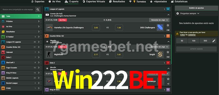 O Win222Bet oferece uma grande seleção de opções de apostas em e-sports com probabilidades competitivas